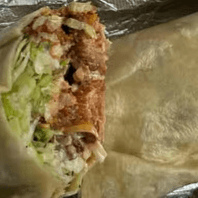 Crispy chicken wrapped in a 12" flour tortilla with lettuce, mixed cheese blend