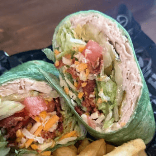 Oven roasted turkey, applewood smoked bacon, lettuce, VT Cheddar cheese, and ranch dressing