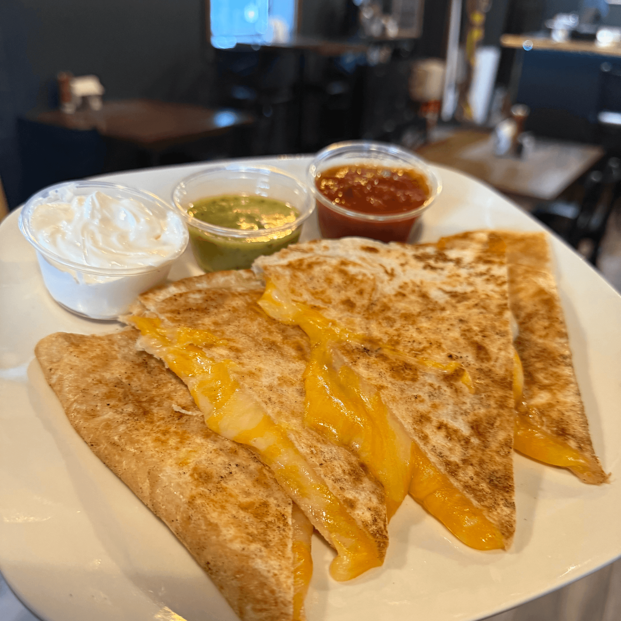VT cheddar & Monterey Jack cheese melted in a toasted 12" tortilla