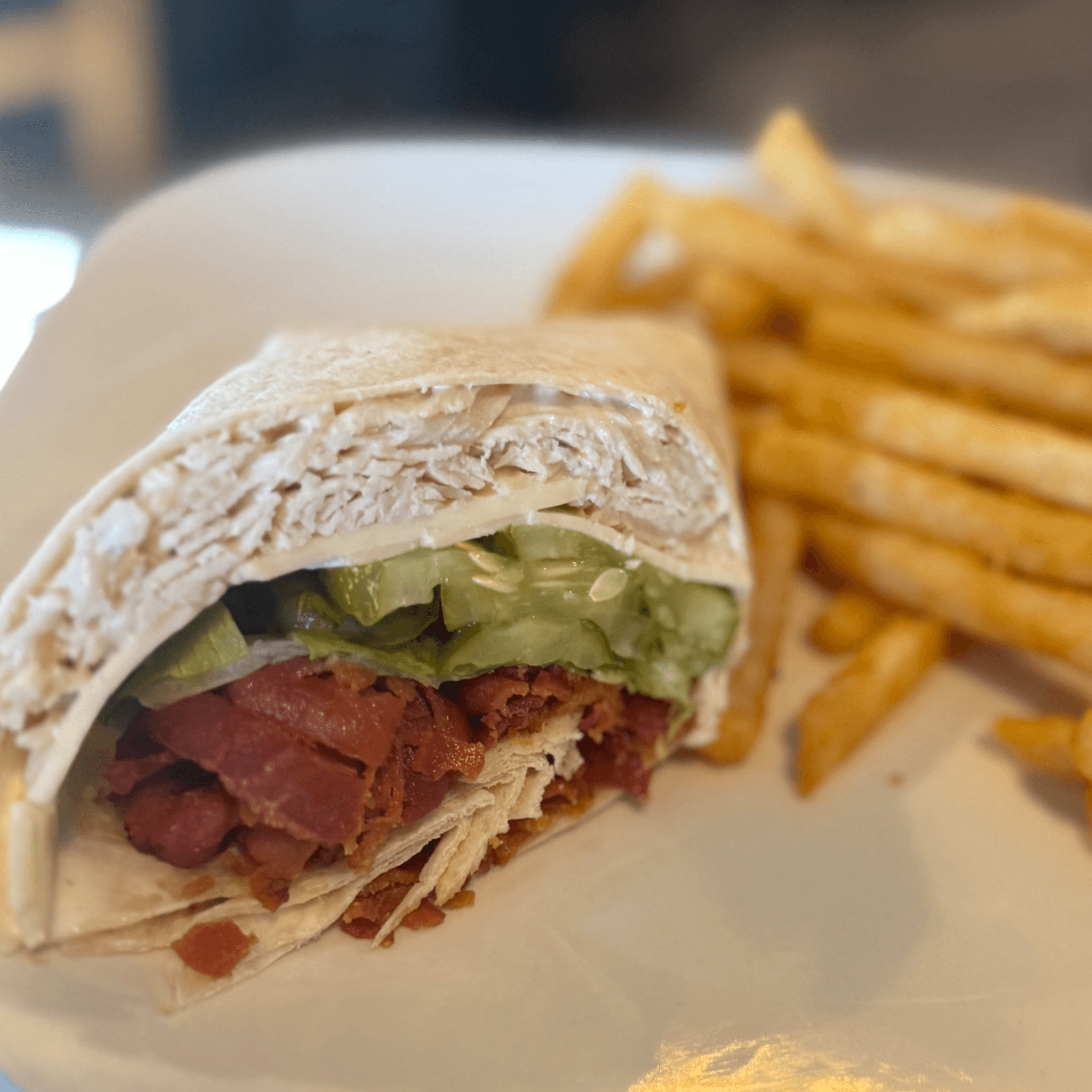 Oven roasted turkey, applewood smoked bacon, lettuce, tomato and mayo