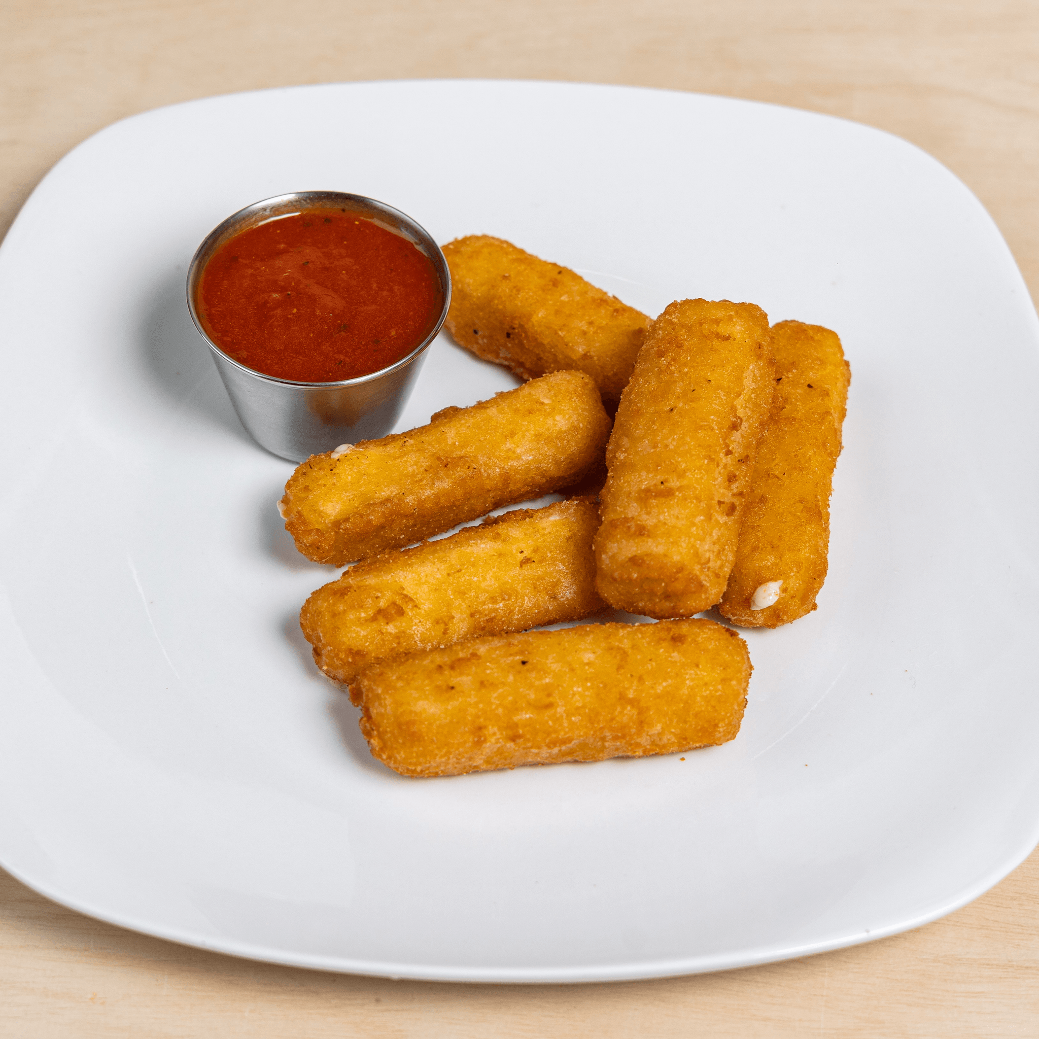 Breaded mozzarella served with marinara sauce